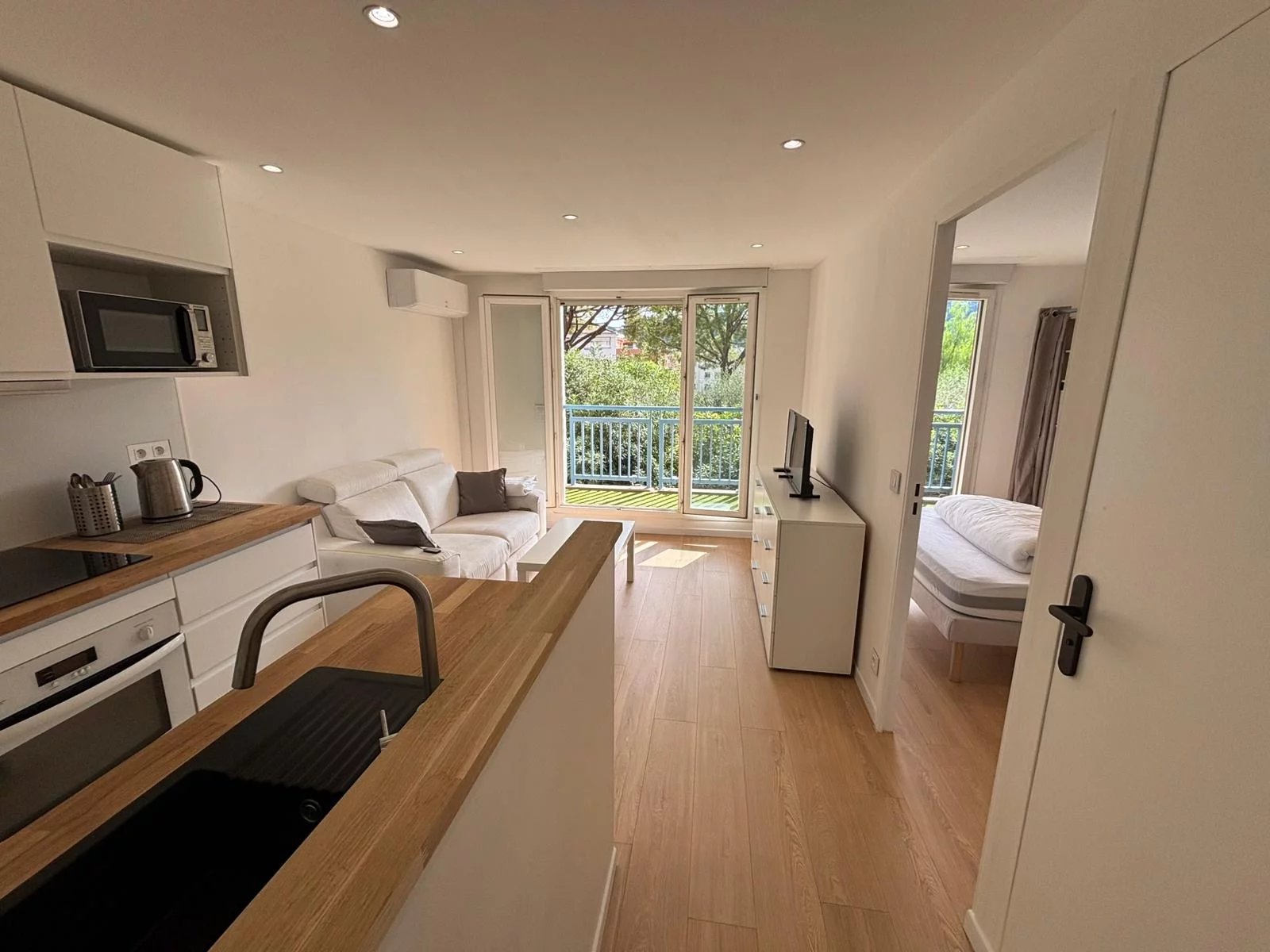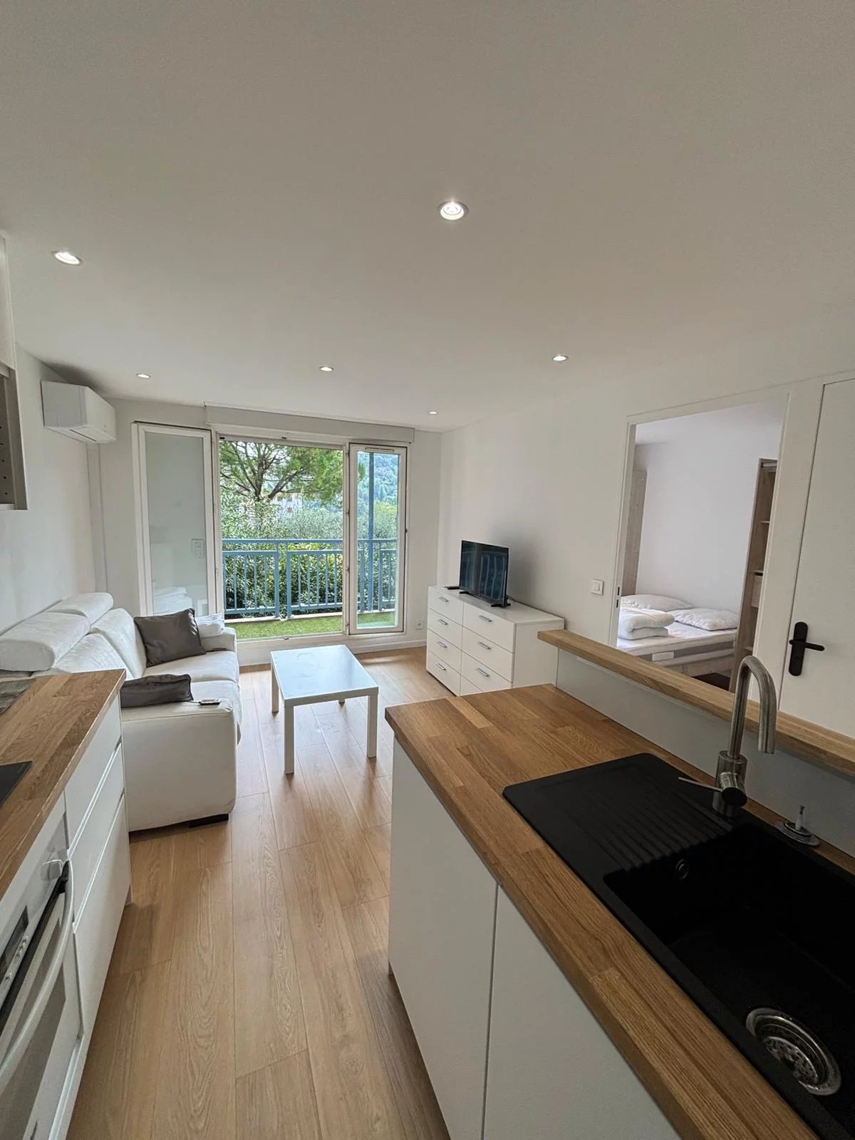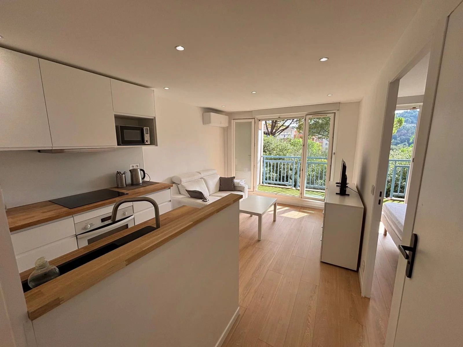 2 PIECES MEUBLE à VALLAURIS, coquet F2 intégralement refait, IDEAL JEUNE ACTIF ou ETUDIANT, composé d'une pièce principale avec cuisine américaine équipée, salle de douche avec toilettes, une loggia ensoleillé au calme offrant une vue verdure, un garage fermé vient compléter ce bien.